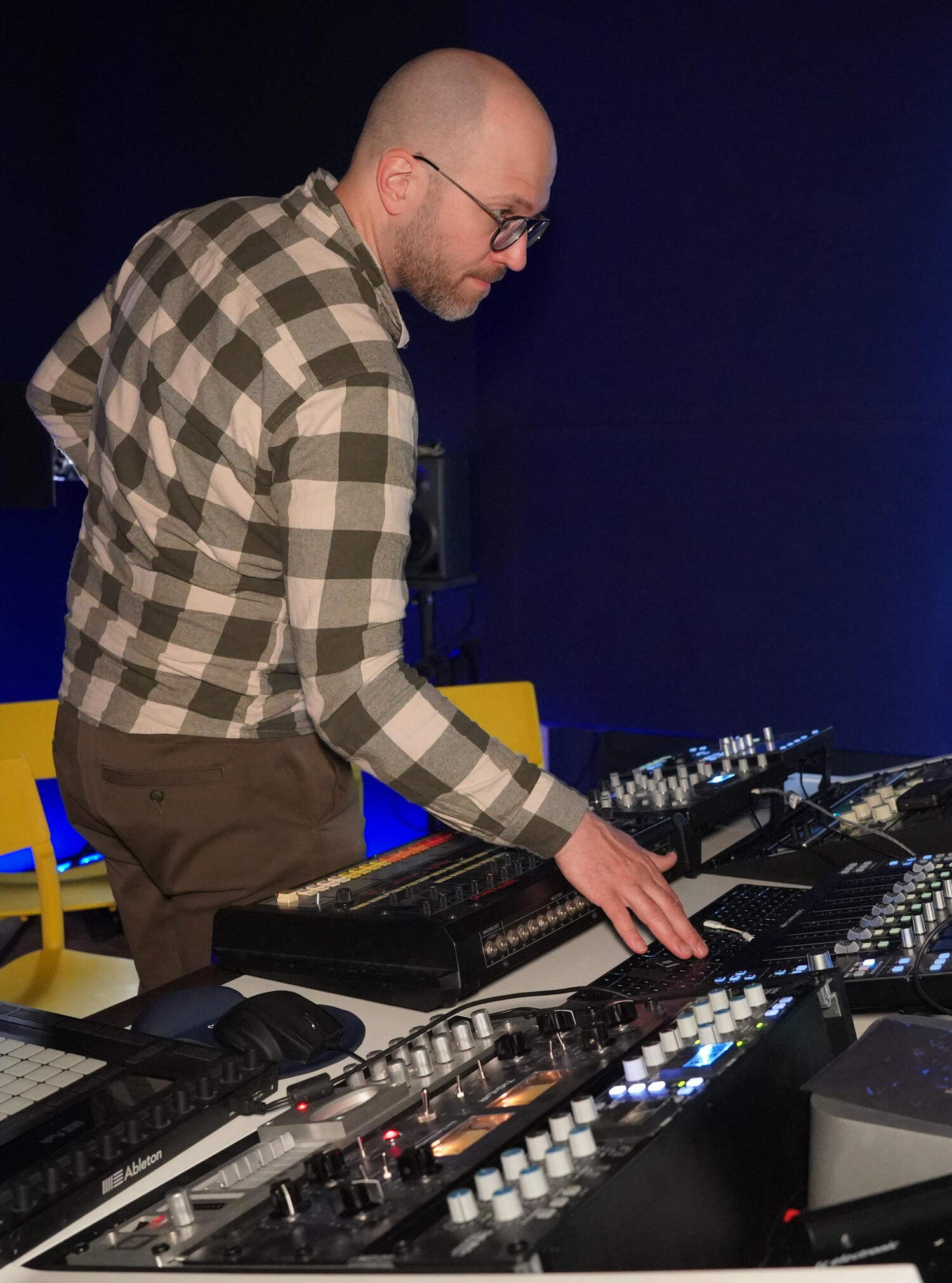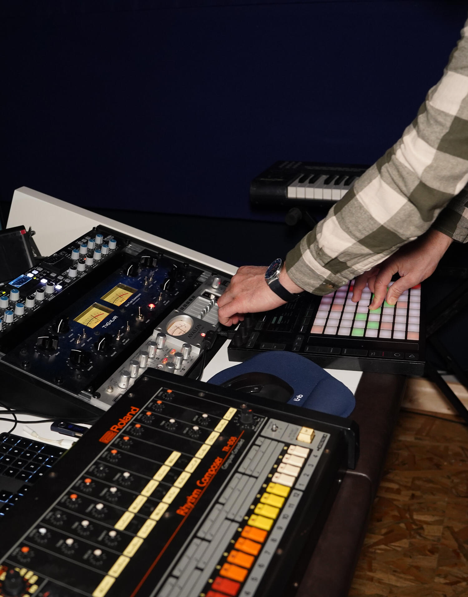 Equipement : BUCHLA, TR808, MOOG, Prophet 8, Roland DX7...